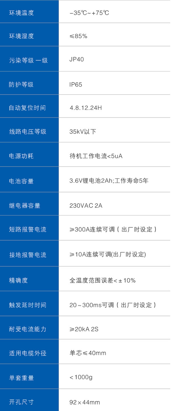 當(dāng)供電線路有短路或接地故障發(fā)生時(shí),短路或接地電流產(chǎn)生的電磁場(chǎng)變化,使固定在電纜上的傳感器中測(cè)量線圈產(chǎn)生脈沖信號(hào),當(dāng)脈沖信號(hào)的值的大小達(dá)到或超過(guò)設(shè)定的故障電流值時(shí),故障指示器會(huì)自動(dòng)記憶故障狀態(tài),故障指示燈閃爍發(fā)出故障指示,同時(shí)通過(guò)遠(yuǎn)程報(bào)警接口,將故障 信號(hào)傳遞給監(jiān)控中心,工作人員通過(guò)故障指示信號(hào)能夠迅速準(zhǔn)確地找到線路故障位置,及時(shí)排除故障,恢復(fù)電網(wǎng)供電。